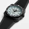 Its standout feature is the fully luminescent dial: the entire surface is coated with green Super-LumiNova® C5, while the applique indices and hands are filled with blue Super-LumiNova® C3, ensuring unmatched legibility in darkness and deep underwater conditions. The unidirectional rotating ceramic bezel with a 60-minute scale and luminous marker enhances dive-time tracking. The sapphire crystal is ultra-resistant and treated with an anti-reflective coating for optimal visibility. With a water resistance of 300 meters (30 ATM), a screw-down crown, and a black perforated rubber strap secured with a black PVD-coated steel pin buckle, the BR 03 Diver Full Lum Ceramic is a bold and functional tool watch—perfect for professional divers and thrill-seekers who demand performance and style.