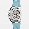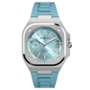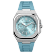 Paired with a textured black rubber strap and a steel folding buckle, this version of the BR-X5 delivers a more athletic, versatile look while maintaining a luxury finish. The rubber strap enhances comfort and durability, making it an ideal companion for both professional settings and active lifestyles. The BR-X5 Ice Blue Steel on rubber is a refined evolution of Bell & Ross’ technical identity—perfect for those who value bold design, precision engineering, and everyday versatility in a standout timepiece.
