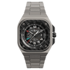 The Bell & Ross BR-X5 Racing is a dynamic expression of performance and precision, inspired by the fast-paced world of motorsport. Built for speed and engineered for accuracy, this timepiece features a 41mm titanium case with a satin and polished finish, delivering both lightweight comfort and high-impact durability. Its bold, angular design reflects the spirit of the racetrack, while its layered construction and modern materials give it a technical, futuristic edge. The standout element is the bright red dial accents, which inject energy and racing DNA into the watch’s aesthetic. The dial itself is a sleek matte black base, enhanced with red details and Super-LumiNova®-filled hands and markers for high visibility in all lighting conditions. A power reserve indicator at 9 o’clock and a magnified date window at 3 o’clock add practical functionality, while the streamlined layout keeps the focus on legibility and clarity—key elements for a timepiece born from performance-driven design. The color contrast not only adds visual appeal but also reflects dashboard instrument styling found in high-performance sports cars. Under the hood, the BR-X5 Racing is powered by the BR-CAL.323 automatic movement, developed in collaboration with Kenissi and COSC-certified for chronometer precision. With a robust 70-hour power reserve, this Swiss-made movement ensures reliability even through extended wear. A transparent sapphire case back offers a glimpse of the mechanical heart inside. The watch is fitted with a matching titanium bracelet, offering strength and comfort, and features 100 meters of water resistance, making it ready for track days and everyday challenges alike. The BR-X5 Racing is the perfect blend of sport, technology, and bold design—made for those who live life in the fast lane.