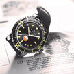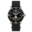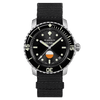 The Blancpain Fifty Fathoms Automatique – Ref. 5008 1130 NABA is a limited-edition timepiece that pays homage to the brand's pioneering dive watch heritage. Introduced in 2017, this model is part of a 500-piece series that combines historical significance with modern watchmaking excellence. The watch features a 40.3 mm stainless steel case with a thickness of 13 mm, offering a balanced presence on the wrist. Its black Dial includes a moisture indicator at 6 o'clock—a nod to the original MIL-SPEC design—alongside luminous hands and hour markers for optimal legibility in low-light conditions. The unidirectional sapphire bezel ensures durability and clarity, essential for underwater navigation. With a water resistance of 300 meters, the timepiece is well-suited for professional diving activities. At its core lies Blancpain's in-house Caliber 1151 automatic movement, renowned for its robustness and precision. This movement offers an impressive 100-hour power reserve and incorporates a silicon balance spring for enhanced resistance to magnetic fields. The watch is paired with a black NATO strap secured by a pin buckle, complementing its rugged aesthetic. The exhibition case back reveals the intricately finished movement, highlighting Blancpain's commitment to horological excellence.