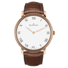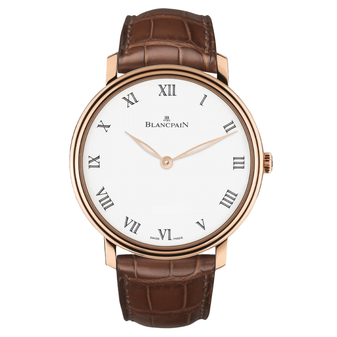 The Blancpain Métiers d'Art 6615 3631 55B is a timepiece that blends horological precision with unparalleled artistry. Crafted from 45mm Red Gold, the case radiates warmth and opulence, elevating the watch to an exceptional standard of luxury. The Red Gold case, known for its elegant hue and refined finish, perfectly complements the intricacies of the Dial, exuding sophistication and timeless appeal. This watch is designed for those who value true craftsmanship and exclusivity. The Dial of the 6615 3631 55B is an extraordinary piece of art in itself, featuring a white Grand Feu enamel Dial. This technique, known for its rare and labor-intensive process, ensures the Dial’s surface remains flawless and vibrant for years to come. The Grand Feu enamel creates a stunning, glossy finish, providing depth and a luminous quality that contrasts beautifully against the Red Gold case. The delicate application of the enamel is a true testament to Blancpain’s expertise in both traditional and innovative watchmaking, showcasing the fine balance of art and technology. Powering this exquisite timepiece is an Automatic movement, providing precision and reliability with each passing moment. Complementing the watch's refined aesthetic is a luxurious brown alligator leather strap, which provides both comfort and style. The strap is secured with a Folding Clasp, ensuring a perfect fit and effortless wear. The Blancpain Métiers d'Art 6615 3631 55B is a masterpiece of fine watchmaking—a stunning example of how artistry and craftsmanship can be combined into one exceptional timepiece.