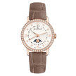 The Blancpain Villeret Quantième Phases de Lune 6106 2987 55A is a beautifully crafted timepiece that combines elegance with intricate functionality. This watch features a 29.2 mm red gold case with a thickness of 10.35 mm. The opaline dial is set with diamonds, adding a touch of sophistication and luxury. Powered by the Caliber 913QL automatic movement, it operates at a frequency of 3 Hz and includes 20 jewels, ensuring smooth and reliable performance. The movement also offers a power reserve of 40 hours. One of the standout features of this watch is the moon phase complication, which beautifully displays the lunar cycles on the dial. The sapphire back allows a view of the intricate movement inside. The watch comes with an alligator leather strap and a pin buckle for secure fastening. Overall, the Blancpain Villeret Quantième Phases de Lune 6106 2987 55A is a perfect blend of timeless elegance and modern precision, making it an excellent choice for watch enthusiasts.