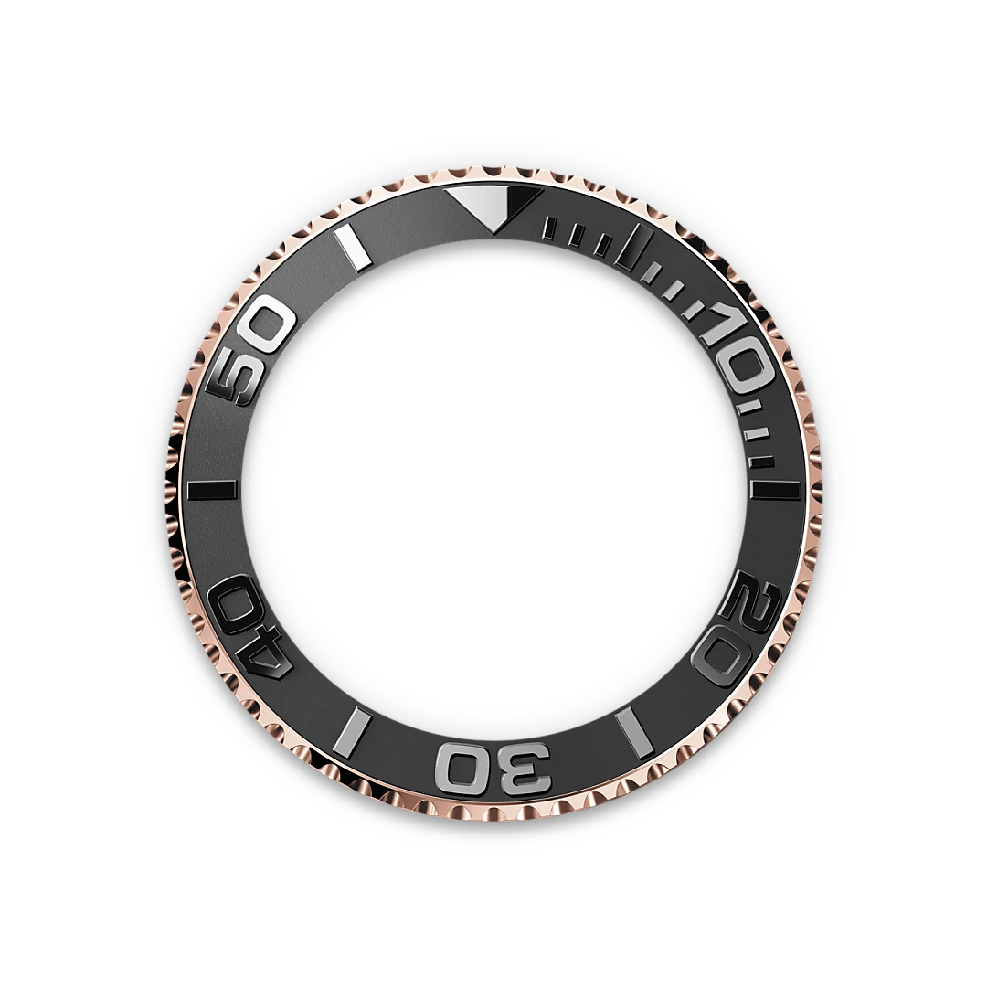 The Yacht-Master’s new Oysterflex bracelet, developed by Rolex and patented, offers a sporty alternative to metal bracelets. The bracelet attaches to the watch case and the Oysterlock safety clasp by a flexible titanium and nickel alloy metal blade. The blade is overmoulded with high-performance black elastomer which is particularly resistant to environmental effects, very durable and perfectly inert for the wearer of the watch. For enhanced comfort, the inside of the Oysterflex bracelet is equipped with a patented longitudinal cushion system that stabilizes the watch on the wrist and fitted with an 18 ct Everose gold Oysterlock safety clasp. It also features the Rolex Glidelock extension system, designed by the brand and patented. This inventive toothed mechanism, integrated beneath the clasp, allows fine adjustment of the bracelet length by some 15 mm in increments of approximately 2.5 mm, without the use of tools.